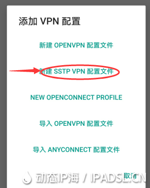 打開APP→點擊“+”→點擊“新建SSTP 配置文件”