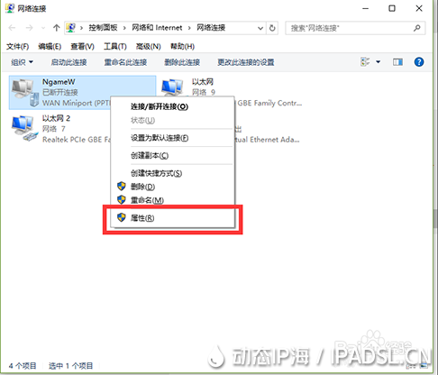 第八步: 找到剛建立的鏈接適配器 - 并右鍵點擊 [屬性]